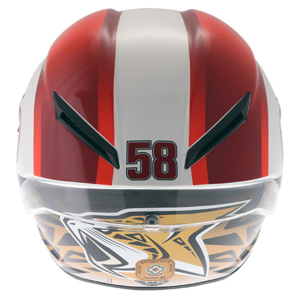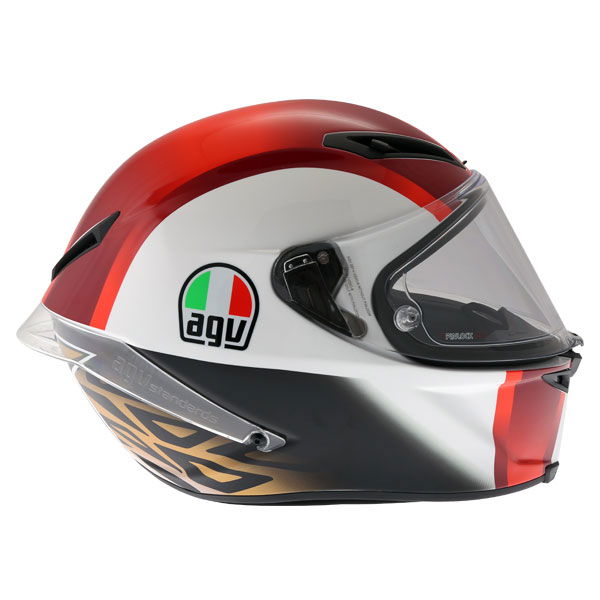 The AGV Corsa-R Simoncelli helmet is a premium quality helmet made from a mixed carbon and fibreglass construction making this ultra-lightweight and comfortable. This offers enhanced IVS (Integrated Ventilation System), pressure-free fit interior and cheek pads, fully removable and washable inner liners, reversible crown pad helps keep your cool, Pinlock ready Race 2 visor (insert included) visor can be removed without using tools, aerodynamic rear diffuser for added stability, removable breath deflector and chin curtain, integrated visor tear-off system (track use racing tear-offs are not included) strong double-D retention system, four shell sizes for optimum fit, weight approximately 1350g (+/- 50g) This is ECE 22.05, AS/NZS, JIS, ECE/DOT certified and ACU Gold approved for use on UK tracks.