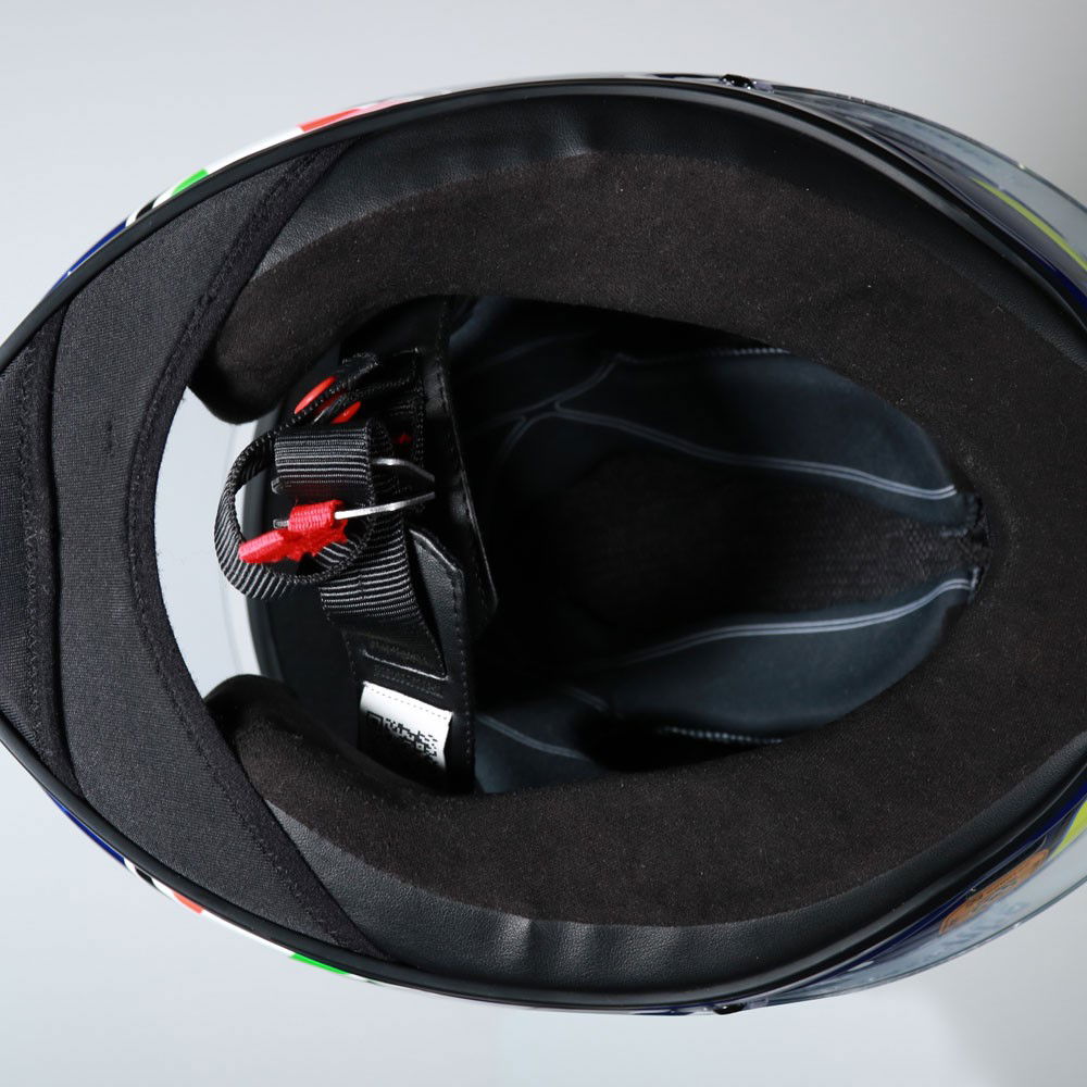 The AGV Corsa Motorcycle Helmet combines the performance of the Pista GP with road-riding features such as adjustable ventilation and improved comfort without sacrificing the performance standards of the GP model. Built in conjunction with Valentino Rossi and tested at the highest levels. The Corsa is not a full carbon fibre shell, but the shell shape, aerodynamics, ventilation and eye-port improvements will be shared cross-platform with the Pista GP Helmet. The key improvements of the Corsa compared to the GP Tech are weight savings, 193% more ventilation surface area, 71% smaller visor movement area, 48% less HIC index standard (Head Injury Criterion), 44% less lift, 36% less g-force transmitted to the head (compared to the ECE regulation) shell: SSL (Super Super Light) in composite fibre, aramid and Carbon Fibre, four shell sizes, Ventilation System: IVS (Integrated Ventilation System) with wide ducts hollowed into the shell, breathable Lycra micro-porous lining and Dry-comfort fabric with sanitising treatment, fully removable and washable inner liners of CoolMax fabric, Faceshield: RACE 2 flat, non-scratch shield with a wide field of vision, Pinlock ready and suitable for tear-offs (Pinlock faceshield comes as standard) Shield Mechanism: XQRS (Extra Quick Release System) in metal with roto-translation opening, Quick Release Shield: For tool-free removal and replacement of the visor in seconds and a double D retention system. Please note this does not come with the original box or bag.