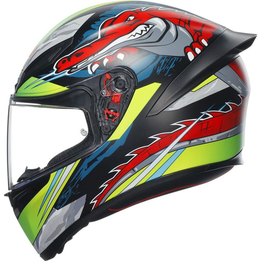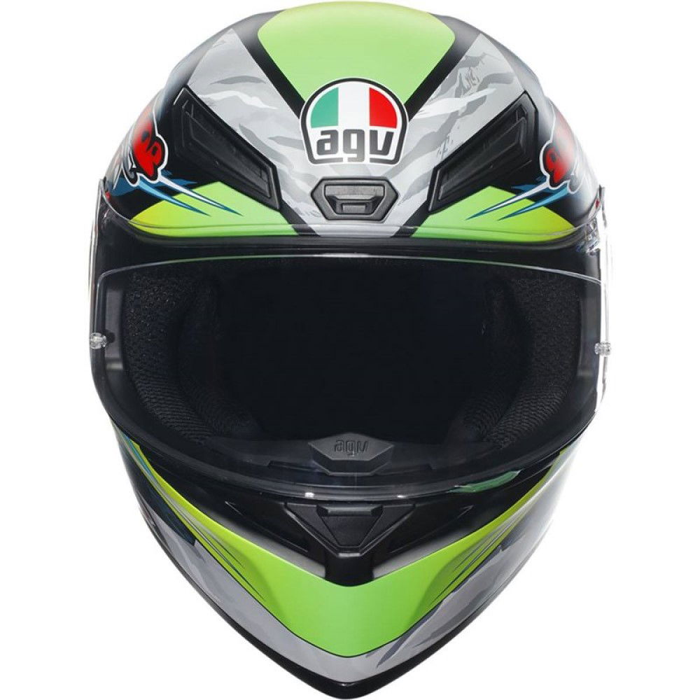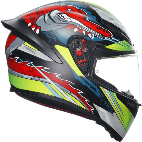 The AGV K1-S Dundee full-face motorcycle helmet has a thermoplastic resin outer with four densities of shock-absorbing EPS inner shells. The K1-S has a sophisticated ventilation system with a spoiler, two exhaust fans, five adjustable front vents, and optimal cooling inside. The clear visor is scratch-resistant, has a micro-opening system, is Pinlock prepared and has AGV's X-tra Quick Release System (XQRS), meaning you can easily replace the visor without tools. The removable and washable lining doesn't have stitching on the most sensitive areas and is sanitised with Dry-Comfort fabric for excellent moisture absorption. In addition, it offers recesses for communication systems and grooves for glasses wearers. The K1-S also has a removable nose guard, wind deflector, and an ultra-secure and adjustable double-D ring closure system.
