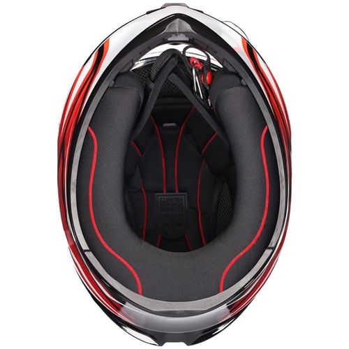 The AGV K1-S Lion full-face motorcycle helmet has a thermoplastic resin outer with four densities of shock-absorbing EPS inner shells. The K1-S has a sophisticated ventilation system with a spoiler, two exhaust fans, five adjustable front vents, and optimal cooling inside. The clear visor is scratch-resistant, has a micro-opening system, is Pinlock prepared and has AGV's X-tra Quick Release System (XQRS), meaning you can easily replace the visor without tools. The removable and washable lining doesn't have stitching on the most sensitive areas and is sanitised with Dry-Comfort fabric for excellent moisture absorption. In addition, it offers recesses for communication systems and grooves for glasses wearers. The K1-S also has a removable nose guard, wind deflector, and an ultra-secure and adjustable double-D ring closure system. Available in a choice of colours, this is the Lion graphic in black, red and white.