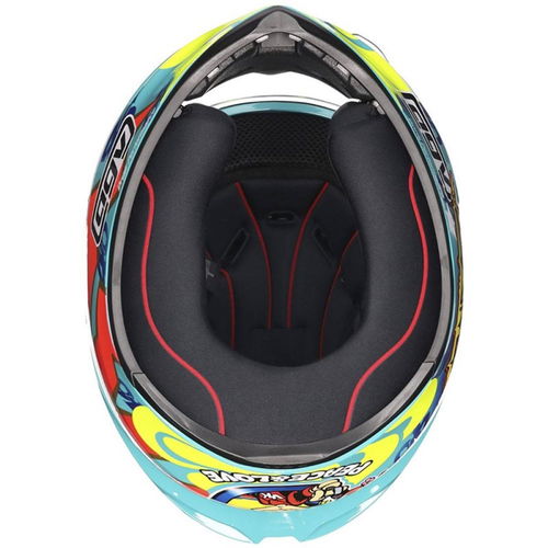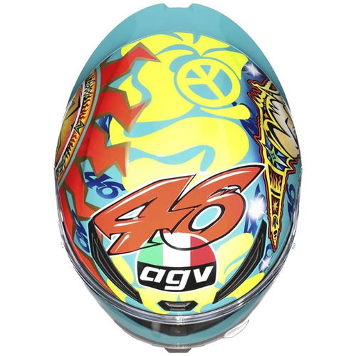 Genuine Rossi Valentino race replica - the Rossi Mugello 1999. The AGV K1-S full-face motorcycle helmet has a thermoplastic resin outer with four densities of shock-absorbing EPS inner shells. The K1-S has a sophisticated ventilation system with a spoiler, two exhaust fans, five adjustable front vents, and optimal cooling inside. The clear visor is scratch-resistant, has a micro-opening system, is Pinlock prepared and has AGV's X-tra Quick Release System (XQRS), meaning you can easily replace the visor without tools. The removable and washable lining doesn't have stitching on the most sensitive areas and is sanitised with Dry-Comfort fabric for excellent moisture absorption. In addition, it offers recesses for communication systems and grooves for glasses wearers. The K1-S also has a removable nose guard, wind deflector, and an ultra-secure and adjustable double-D ring closure system. ECE 22-06 certified. Peace and love.