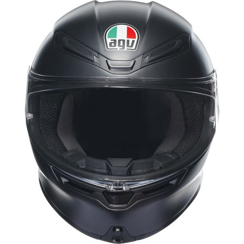 The AGV K6 S is the essence of versatility, developed for maximum performance for MotoGP riders. It is suitable for every type of riding and all road surfaces. Made from a carbon and Aramid fibre shell, it is ultra-lightweight (1.255 g in first shell size). It has four shell sizes and 5-density EPS shells in four sizes, too, with a collarbone-safe profile. Due to the stringent AGV Extreme Safety design protocol, the AGV K6-S passes all the tests required by the strict ECE22.06 standard by a large margin, making the helmet 36% safer than the levels required by the latest road homologations. The aerodynamic shapes developed in AGV's wind tunnel are optimised for ideal aerodynamics and for reduced turbulence. The spoiler splits the air and limits buffeting at cruising speeds. The premium interiors are waterproof and ventilated. They are designed so riders can cover endless miles in total comfort with only the road ahead to focus on. Made from Microsense, Shalimar fabric, Ritmo and DrySpeed, it gives instant sweat absorption and premium comfort. The interior is fully removable and washable with AGV's safety release system cheek pads for superior safety. The K6-S comes with an embracing neck roll profile made from Ritmo fabric and synthetic leather with high abrasion resistance and water-resistant properties. Glasses grooves allow for easy use while wearing glasses, and this comes with a removable nose guard and is ready for the AGV ARK communication system. Innovative air vents on the forehead and chin guard (five air inlets) are designed for easy adjustment even when wearing gloves, which means the rider always has the right amount of ventilation. The large, comfortable interior of the chin guard is designed to take advantage of maximum ventilation with vents open. The K6-S also features a wide rear extractor for superior air circulation. Reflective inserts maximise visibility, and a wind protector prevents fogging up. The anti-scratch optic class 1 clear visor is Pinlock ready, and the K6-S comes with a 100% Max Vision Pinlock (120) included. The wider aperture allows a 190-degree horizontal field of view and an 85-degree vertical field of view for maximum vision and safety. The metal visor mechanism is ultra-durable, and it also boasts a micro-opening system with a multistep visor mechanism for convenience. The AGV K6-S also boasts AGV's patented Extra Quick Release System and AGV's patented and proven visor lock system. The double D closure is ultra-secure and adjustable for the perfect custom fit. Available in a large variety of colours and designs - this is the matt black colourway.