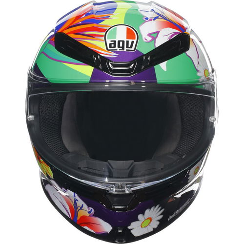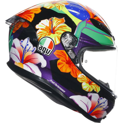Genuine Morbidelli 2021 race replica. The AGV K6 S is the essence of versatility, developed for maximum performance for MotoGP riders. It is suitable for every type of riding and all road surfaces. Made from a carbon and Aramid fibre shell, it is ultra-lightweight (1.255 g in first shell size). It has four shell sizes and 5-density EPS shells in four sizes, too, with a collarbone-safe profile. Due to the stringent AGV Extreme Safety design protocol, the AGV K6-S passes all the tests required by the strict ECE22.06 standard by a large margin, making the helmet 36% safer than the levels required by the latest road homologations. The aerodynamic shapes developed in AGV's wind tunnel are optimised for ideal aerodynamics and for reduced turbulence. The spoiler splits the air and limits buffeting at cruising speeds. The premium interiors are waterproof and ventilated. They are designed so riders can cover endless miles in total comfort with only the road ahead to focus on. Made from Microsense, Shalimar fabric, Ritmo and DrySpeed, it gives instant sweat absorption and premium comfort. The interior is fully removable and washable with AGV's safety release system cheek pads for superior safety. The K6-S comes with an embracing neck roll profile made from Ritmo fabric and synthetic leather with high abrasion resistance and water-resistant properties. Glasses grooves allow for easy use while wearing glasses, and this comes with a removable nose guard and is ready for the AGV ARK communication system. Innovative air vents on the forehead and chin guard (five air inlets) are designed for easy adjustment even when wearing gloves, which means the rider always has the right amount of ventilation. The large, comfortable interior of the chin guard is designed to take advantage of maximum ventilation with vents open. The K6-S also features a wide rear extractor for superior air circulation. Reflective inserts maximise visibility, and a wind protector prevents fogging up. The anti-scratch optic class 1 clear visor is Pinlock ready, and the K6-S comes with a 100% Max Vision Pinlock (120) included. The wider aperture allows a 190-degree horizontal field of view and an 85-degree vertical field of view for maximum vision and safety. The metal visor mechanism is ultra-durable, and it also boasts a micro-opening system with a multistep visor mechanism for convenience. The AGV K6-S also boasts AGV's patented Extra Quick Release System and AGV's patented and proven visor lock system. The double D closure is ultra-secure and adjustable for the perfect custom fit.