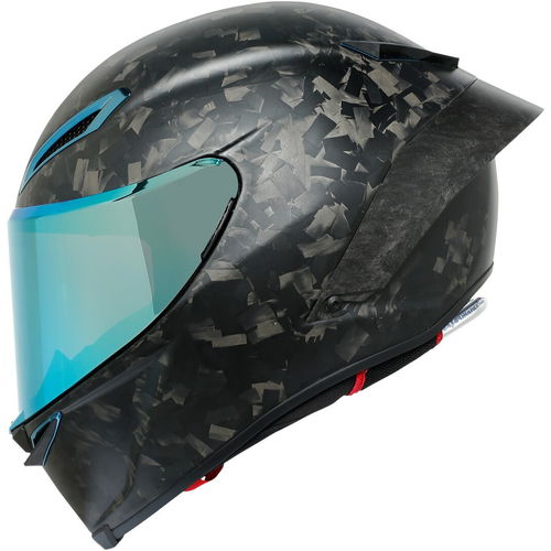 The AGV Pista GP RR Futuro Carbonio Forgiato is an exact replica of the AGV helmet used by champions in the World Championship. It has, therefore, received the new FIM homologation, which certifies the highest possible level of protection, even against any dangerous head twisting. The Extreme Carbon shell in 100% carbon fibre guarantees extraordinary lightness, superior comfort, and aerodynamics. (1.450 g in first shell size) Its sleek silhouette and metal air vents were studied in AGV's wind tunnel and tested by AGV athletes to ensure the best aerodynamic penetration and the most excellent stability at high speeds, also due to the innovative profile of the rear PRO Spoiler. Four shell sizes give the perfect fit, prevent buffering, and ensure a lightweight fit. It also has four sizes of 5-density EPS for enhanced aerodynamics and features a collarbone-safe profile. The shell and EPS structure are designed to minimise rotational accelerations (FIM homologated). Boasting 5 mm thickness, the optical class 1 Ultravision visor is an integral part of the protector that allows 190-degree panoramic vision. This gives the rider superior vision for maximum safety. It also offers a micro-opening system with a metal visor mechanism for durability with AGV's patented Extra Quick Release System and its patented and proven visor lock system. AGV's exclusive 360-degree Adaptive Fit system allows for complete interior customisation, allowing the rider to select the ideal thickness for the upper part of the head, nape and cheeks for optimum comfort. 2Dry instant sweat absorption and Microsense breathability keep you comfortable at all times, and it is fully removable and washable. A breathable neckroll with waterproof inserts gives enhanced comfort and protection from the elements, and there are no stitches in sensitive areas. The Pista GP-RR even has the facility to add a hydration system and comes with a tear-off kit. A removable nose guard and removable wind protector are handy additions. The detachable PRO spoiler gives added versatility for rider preference and even offers race suit fitment for optimum protection. As you would expect from a track helmet, the first-class ventilation system has five front vents and two rear extractors for exceptional airflow, with metal air vents and extractors for robustness. The closure system is a titanium double D ring for maximum security and adjustability for the perfect fit. ECE 22.06 certified. Other colours and designs also available.