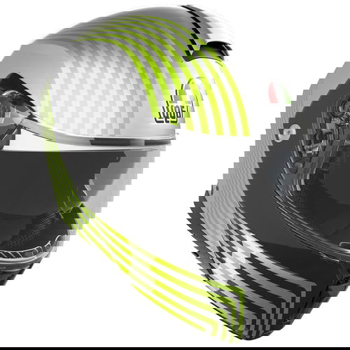 The AGV Street Modular motorcycle helmet is the perfect urban touring helmet. It boasts CE ECE22.06 standard and has P/J homologation, which allows safe, street-legal use even with the chin guard open. Made from High Impact Resistance Thermoplastic (HIR-TH) outer with two shell sizes weighing an ultra-lightweight 1.690kg in the first shell size, it also offers multi-density EPS developed in three sizes. Every detail was built for the utmost versatility – the built-in sun visor guarantees protection and visual comfort on the brightest days and can be operated easily while wearing gloves. Its construction enables perfect airflow even with the sun visor in the rest position. The Pinlock Max Vision system (Pinlock insert included) minimises visor fogging even in the most challenging weather conditions. The Ultravision anti-scratch visor, with a 190-degree horizontal field of vision, means you see the road, curves and obstacles earlier for maximum control of the situation. Two large front intake vents and one rear extraction vent give superior airflow and can be personalised for versatility. The micrometric steel closure allows fast, custom, precise and safe fastening. The inside of the AGV Street Modular is made of soft, resistant 2Dry material that guarantees sweat absorption and quick drying and is fully removable and washable. It has no stitching in sensitive areas for maximum comfort and features glasses grooves and a neck roll profile for additional convenience. The AGV Street Modular is compatible with the dedicated integrated AGV intercom system. Available in a wide choice of colours and designs - this is the Iseo graphic in matt white black and flo yellow.