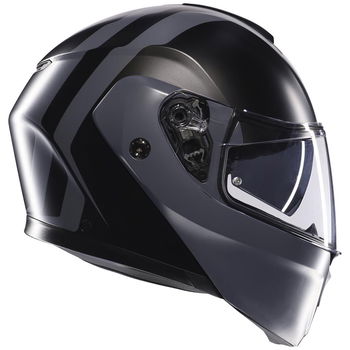 The AGV Street Modular Resia Black Grey motorcycle helmet is the perfect urban touring helmet. It boasts CE ECE22.06 standard and has P/J homologation, which allows safe, street-legal use even with the chin guard open. Made from High Impact Resistance Thermoplastic (HIR-TH) outer with two shell sizes weighing an ultra-lightweight 1.690kg in the first shell size, it also offers multi-density EPS developed in three sizes. Every detail was built for the utmost versatility – the built-in sun visor guarantees protection and visual comfort on the brightest days and can be operated easily while wearing gloves. Its construction enables perfect airflow even with the sun visor in the rest position. The Pinlock Max Vision system (Pinlock insert included) minimises visor fogging even in the most challenging weather conditions. The Ultravision anti-scratch visor, with a 190-degree horizontal field of vision, means you see the road, curves and obstacles earlier for maximum control of the situation. Two large front intake vents and one rear extraction vent give superior airflow and can be personalised for versatility. The micrometric steel closure allows fast, custom, precise and safe fastening. The inside of the AGV Street Modular is made of soft, resistant 2Dry material that guarantees sweat absorption and quick drying and is fully removable and washable. It has no stitching in sensitive areas for maximum comfort and features glasses grooves and a neck roll profile for additional convenience. The AGV Street Modular is compatible with the dedicated integrated AGV intercom system. Available in a wide choice of colours and designs.