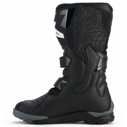 The Alpinestars Corozal Drystar V2 adventure boots deliver top-tier protection, all-day comfort, and exceptional performance across diverse terrains and weather conditions. Engineered for long-distance rides and superior walking comfort off the bike, these boots are rugged, durable, yet lightweight, offering enhanced protection—making them the perfect choice for adventure riders. Made from leather, microfibre, and suede, they provide long-lasting wear, premium comfort, and are lightweight. The wide-entry aperture allows for easy entry and exit, combined with a Velcro and TPR closure system for a secure, customisable fit that accommodates a wide range of riders’ calf sizes. The integrated waterproof and breathable Drystar membrane gives proven wet-weather performance. The all-terrain sole provides excellent grip, and the midsole enhances stability and durability. Durable, lightweight polymer buckles feature a micro-ratchet memory system with a quick-release/self-aligning design for fast, secure, and precise closure. All buckles are replaceable for added longevity. The low-profile shin plate allows riders to comfortably wear adventure pants both inside and over the boots without compromising protection or mobility. The all-new lateral pivot system ensures excellent front and rear movement while delivering precise lateral ankle support. The TPU shin plates and lateral ankle protectors provide support and resistance against impacts, along with a TPU back bridge that safeguards the Achilles tendon for added protection. The reinforced toe box and heel counter are layered under the upper for enhanced safety and durability. A textured surface on the gear change pad gives improved grip. CE certified to EN 13634:2017.