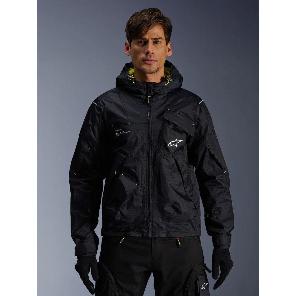 The Alpinestars Mogress Air jacket is an urban motorcycle jacket - it looks just as at home on the street as it does on the bike. This lightweight and highly functional jacket seamlessly blends the racing DNA of Alpinestars with the edgy street styling. Inspired by utility-outdoor designs, the Mogress Air Jacket offers a customisable fit with adjusters on the waist and arms that ensure a snug and secure fit tailored to your preferences. Contrasting inner linings and zipped openings on the shoulders and elbows add a touch of personality, and the external zips make it easy for riders to adjust the positioning of the protectors. Designed for warm weather, it features laser-perforated areas and multiple ventilation openings with inner mesh, ensuring optimal airflow and breathability. The jacket's hood provides reliable protection during unexpected rain showers, while the snap system secures it to prevent flapping. For added versatility, the hood can easily be rolled away when not in use. The Mogress Air jacket is made from durable Ripstop, made from recycled nylon for enhanced durability and sustainability. It is CE A Certified and comes with Alpinestars Nucleon Flex Plus Level 1 Protectors on the shoulders and elbows for superior protection. The Mogress also offers an inner waterproof pocket for secure storage.