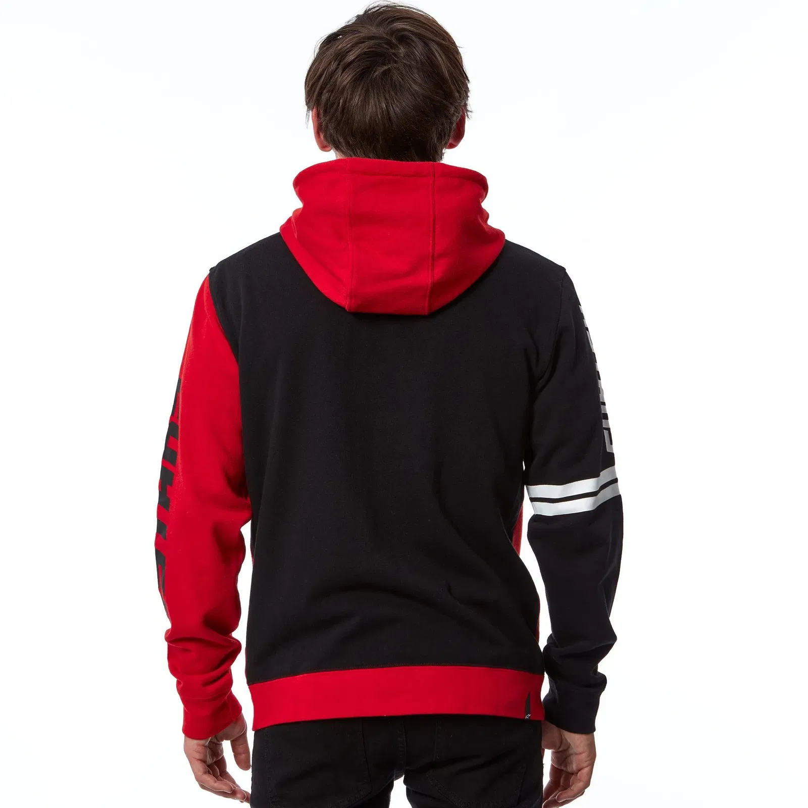 The Alpinestars Overtake hoodie is made from 80% Cotton / 20% Polyester, 280g/m2, with a solid colour body with contrast sleeves. It features jersey hood lining and ribbed cuffs and hem for superior comfort. Alpinestars race-inspired chest graphics and word graphics on both sleeves look great.
