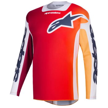 Part of the Alpinestars Racer range, the Alpinestars Racer Portl Jersey is a motocross jersey that features many technical upgrades suggested by Alpinestars' sponsored professional riders. It is designed to improve comfort and performance. The jersey has a single-piece construction made from advanced multi-stretch poly-fabric that is lightweight, durable and moisture-wicking, and offers overlock stitching throughout. As you would expect from an off-road garment, the jersey gives plenty of room for movement, but the stretch collar and cuffs ensure a comfortable fit. Premium stretch mesh inserts are placed on the side of the underarms for enhanced airflow and breathability. The jersey is also cut longer at the back. Fade-resistant graphics ensure this looks better for longer. Available in a choice of colours and designs.