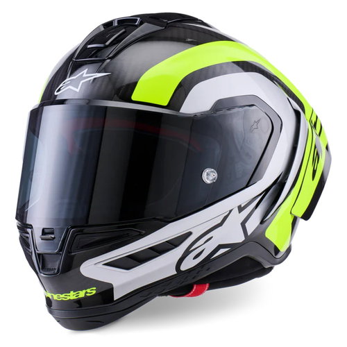 Designed and developed for professional MotoGP riders, the Alpinestars Supertech R10 Arius is the pinnacle of Alpinestars racing helmets. It minimises drag and ensures optimal aerodynamic stability. Made from an ultra-durable, lightweight carbon composite outer shell with multi-layer composite construction, bonded with advanced epoxy resin to provide strength, mechanical performance, and weight ratio, it is ECE 22.06 certified and FIM homologated, weighing just 1540 g +/-50 g (size M). The optimised chin bar gives maximum collarbone protection with a recess in the collarbone area to ensure a softer volume during body contact. The chin bar has a light and robust profile to protect the tip of the driver's chin. External and internal design and material densities have been optimised for maximum protection against linear and oblique acceleration impacts; the entire helmet shape is designed for aerodynamic efficiency and stability, with racing spoilers and winglets reducing air resistance by an additional 4.54%. The visor mechanism is installed with metal locking levers that prevent accidental release during impacts and are locked in the closed position by a front metal hook. Alpinestars' quick-release system allows you to change the visor quickly and easily. The extra-wide aperture provides an ultra-wide field of view (220 degrees lateral and 57 degrees vertical). The visor is Pinlock-ready and equipped with Tear-Off films (and comes with a Pinlock insert and Tear-Off foils). The Supertech R10 boasts an ultra-sophisticated ventilation system with eleven vents and exhausts at the chin, top and rear spoiler. It offers Alpinestars' patented A-Head height and angle adjustment system to tailor to the rider's preferences for superior comfort with EPS foam. The removable, washable, high-quality inner lining is designed for the hydration system. Also, it features the Emergency Removal System for safe, easy removal of cheek pads while the helmet is still on in the event of a collision. It comes with a clear visor, a dark-tinted visor, a breath guard, a Pinlock lens insert and Tear-Off foils. Available in a choice of colours.