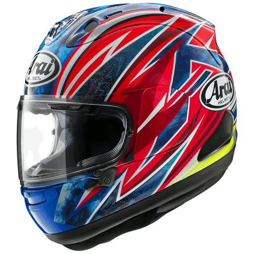 Ai Ogura race replica. The Arai RX-7V Evo motorcycle helmet represents the summit of Arai's knowledge, experience and know-how in helmet technology. With a completely new PB-SNC2 outer shell, the revolutionary VAS (Variable Axis System) visor system and a significantly increased smoother area around the temples, the RX-7V offers a new benchmark in the premium helmet segment. From the also new Eco Pure liner with an even slimmer frame to the new Evo ducts, improved diffuser and integrated Air Channels, every part shows the attention to detail that is so typical for Arai. Arai has continually improved the 'glancing off' performance by learning from real scenarios. Thanks to the new stronger and smoother shell and VAS, the RX-7V Evo is closer to the ideal helmet shape than ever. This offers a full new Evo ventilation system, removable and washable inner padding, which is antibacterial and emergency release cheek pads that allow removal of the helmet without harming the rider in the case of an accident. This also offers a VAS Max Vision visor with a completely new mechanism that facilitates the installation/removal of the visor. There is also a new visor closure system that prevents it from accidentally opening. Comes with Pinlock MaxVision anti-fog laminate as standard for clear vision in any weather condition. The RX-7V Evo closure system is a double buckle, and this comes with a limited 5-year warranty.