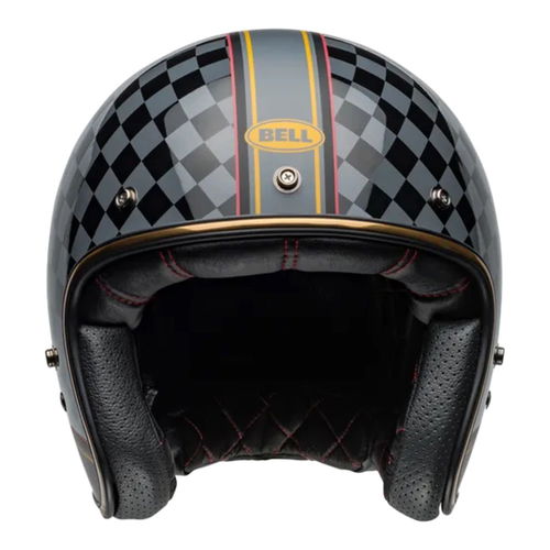 Back in 1954, Bell founder Roy Richter formed his first helmet out of fibreglass and named it the 500. Bell's Custom 500 pays homage to Richter's original design while adding modern protective technology to bring the design up to date. The Bell Custom 500 Wreckers MG has that great pedigree and originality, but it has all the modern touches you would expect from a manufacturer like Bell. The Bell Custom 500 is DOT and ECE 22.06 safety-rated and has a fibreglass composite shell with a multi-density EPS liner and a padded chin strap. The genuine leather interior gives added luxury with a padded liner for comfort and D-ring closure. Five specific shell sizes offer a low-profile look, a personalised fit and an aerodynamic feel. Please note the Custom 500 helmet is small in sizing - you may need to size up.