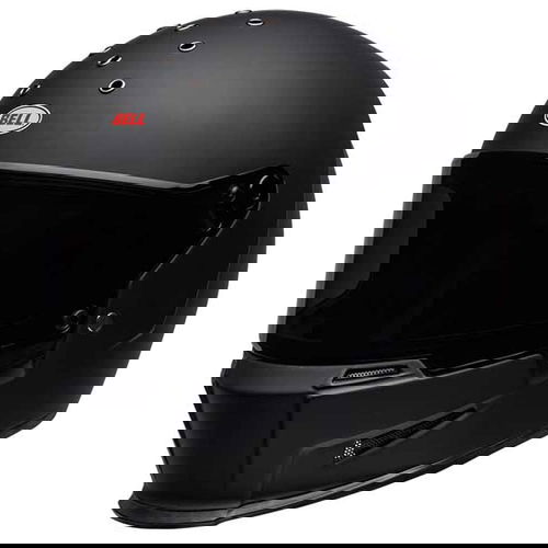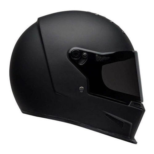 The Bell Eliminator full-face motorcycle helmet is a lightweight, composite fibreglass shell with a PanoVision dual-pane antifog visor with Class 1 optics for excellent vision and an anti-bacterial washable and removable liner with pockets for intercom speakers. The Eliminator also features glasses grooves for the glasses wearers and vent covers and a double D-ring closure system with a magnetic clip. Please note this comes with a road-legal clear visor and not a dark visor. Available in a choice of colours and designs - this is the plain matt black.
