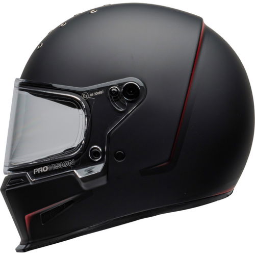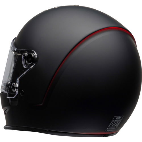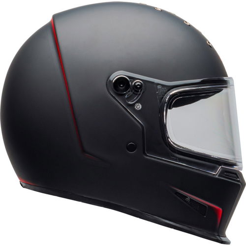 The Bell Eliminator Vanish Matte Black/Red full-face motorcycle helmet is a lightweight, composite fibreglass shell with a PanoVision dual-pane antifog visor with Class 1 optics for excellent vision and an anti-bacterial washable and removable liner with pockets for intercom speakers. The Eliminator also features glasses grooves for the glasses wearers and vent covers and a double D-ring closure system with a magnetic clip. Please note this comes with a road-legal clear visor and not a dark visor.