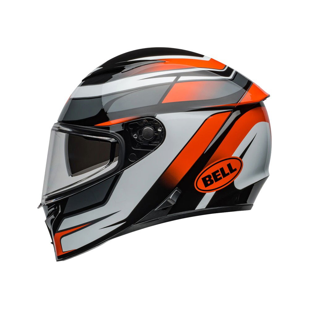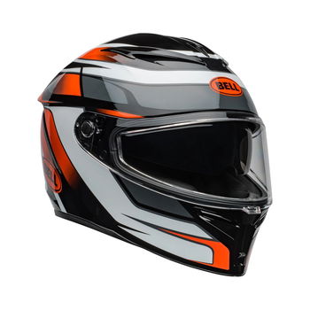 Designed with dynamic, aggressive styling and enhanced aerodynamics, the Bell Lithium MIPS Podium Black Orange helmet is crafted from a polycarbonate shell (50% ABS, 30% EPS, 20% PC) in three shell sizes, weighing 1728g (size M). The multi-density EPS liner provides superior energy management, and the Lithium offers ECE 22.06 certification. MIPS (Multi-Directional Impact Protection System) helps reduce rotational forces in the event of an impact for outstanding protection. It provides enhanced vision thanks to an integrated drop-down sun visor and Class 1-rated optics, along with the ClickRelease V2 anti-scratch treated clear visor and a clear Pinlock insert (Pinlock 70) included in the box. Bell Lithium's removable and washable synthetic leather interior liner delivers all-day comfort, and four closable vents and two exhaust ports on the helmet's exterior allow riders to easily customise airflow. It is communication system ready and offers an easy-to-use premium double D-ring closure system. Available in a wide choice of colours.
