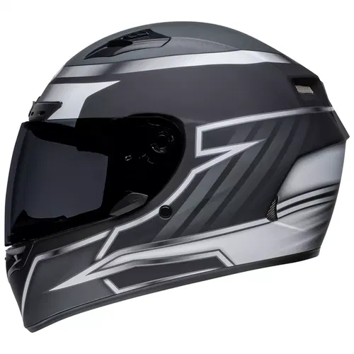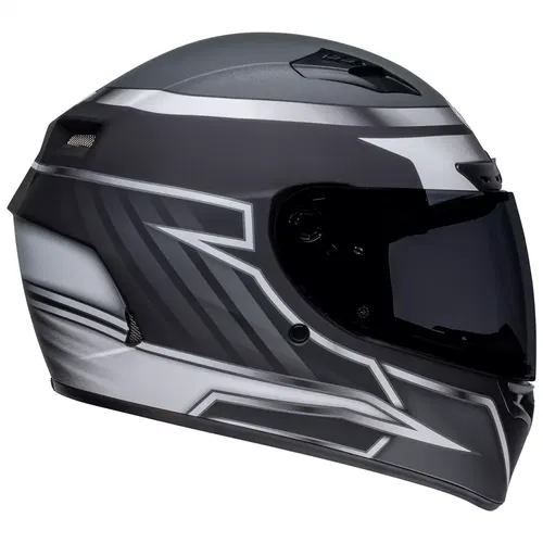 The Bell Qualifier DLX MIPS Raiser full-face motorcycle helmet features a lightweight polycarbonate shell. It comes with Bell's Transitions Adaptive Shield included, and has an adjustable ventilation system for cooling and comfort. A padded wind collar drastically reduces wind and road noise, and a moisture-wicking, removable, washable interior with contoured cheek pads and integrated speaker pockets gives superior comfort. The aerodynamic profile resists buffeting and lift. Click Release gives the fastest, easiest, tool-free visor changes. The NutraFog II superior anti-fog, anti-scratch and UV-protected visor gives superior vision. A padded chin strap with a D-ring closure accommodates the Bell Sena SMH10 and Cardo Scala Rider Q1/Q3 Bluetooth stereo headset and intercom; it also comes with an industry-leading five-year warranty and adjustable Ventilation System. This model benefits from the MIPS energy management system for premium protection. The Bell Qualifier DLX MIPS comes in a wide choice of colours and graphics, this is the Raiser in black and white. PLEASE NOTE THIS COMES WITH A CLEAR VISOR.