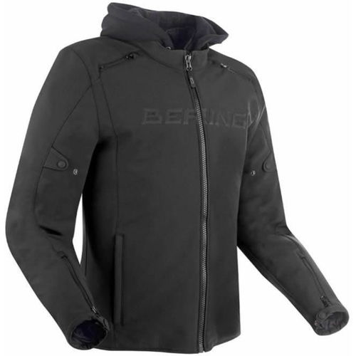 The Bering Elite motorcycle jacket is a softshell hooded jacket that translates to the streets easily. It is made from a softshell with 94% polyester/TPU and 6% elastane (Spandex/Lycra) and a waterproof and breathable BWTECH super membrane. A removable down jacket lining keeps you warm in cooler conditions, and Bering's ADS ventilation system provides air circulation for warmer temperatures. The hood is removable for versatility, with zipped cuff fastenings and anti-bear system sleeves for the perfect fit. Reflective detailing maximises visibility and has trouser connection loops to attach to pants. The Bering Elite jacket features two outer pockets, two inner pockets and a wallet pocket with a double front zip for convenience. It is CE Certified to EN 1621-1: 2013, EN 17092 classe A with adjustable CE Alpha elbow protectors and Alpha CE shoulder armour with a pocket for a back protector (sold separately).