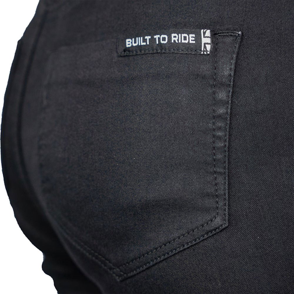 The Bull-It Fury Ladies Skinny Jeans are CE 17092-4:2020 'A' rated and made from Covec jet black super-stretch denim with additional Covec LITE reinforcement in key areas and RE ZRO CE level 1 knee armour. The high-rise provides added coverage in the seated position for exceptional comfort, featuring a skinny fit and super-stretch material. Matt black metal YKK zips and fastenings complete the stylish aesthetic, along with an embroidered Bull-It 'Bull head' logo. High-vis reflective tape gives enhanced visibility in low-light conditions.