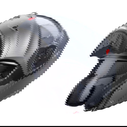 The Caberg Duke X flip-front motorcycle helmet is made from LG CHEM hi-impact ABS, which is ultra-lightweight (1550 +/—50gr) and durable with ECE 22.06 certification and dual P/J homologation. It has two shell sizes (XS, S, M and L, XL, 2XL) for enhanced aerodynamics and reduced weight to prevent buffering. The hypoallergenic and transpiring fabric liner and neck roll lining are fully removable and washable to keep you fresh. Caberg's ventilation system, which has an air-top vent, chin vent and two rear air extractors, provides superior air circulation. Caberg's DVT (Double Visor Tech) system gives superior vision with a clear, anti-scratch main visor and an anti-scratch-treated sunshade visor that is easy to utilise wearing gloves with smooth action. The micrometric buckle offers an adjustable and secure closure, and a removable wind stop prevents fogging up of the visor.