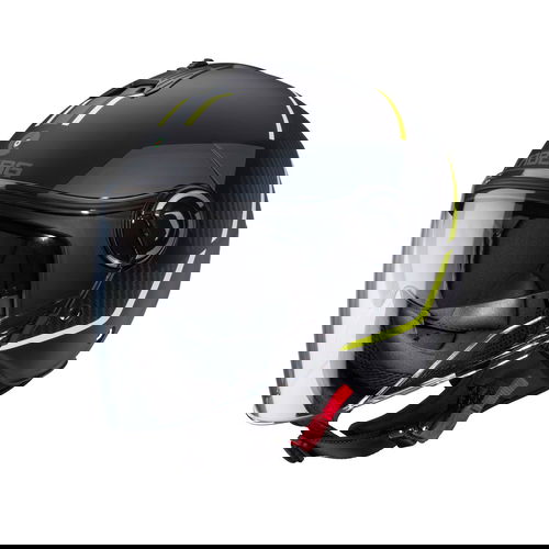 The Caberg Riviera V4X open-face motorcycle helmet is made from LG CHEM hi-impact ABS, which is ultra-lightweight (1150 +/—50gr) and durable with ECE 22.06 certification. It has two shell sizes (XS, S, M and L, XL, 2XL) for enhanced aerodynamics and reduced weight to prevent buffering. The hypoallergenic and transpiring fabric liner and neck roll lining are fully removable and washable to keep you fresh. Caberg's ventilation system, which has an air-top vent and two rear air extractors, provides superior air circulation. Caberg's DVT (Double Visor Tech) system gives superior vision with a clear, anti-scratch main visor and an anti-scratch-treated sunshade visor that is easy to utilise wearing gloves with smooth action. The micrometric buckle offers an adjustable and secure closure.