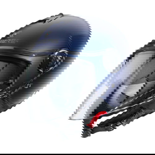 The Caberg Riviera V4X open-face motorcycle helmet is made from LG CHEM hi-impact ABS, which is ultra-lightweight (1150 +/—50gr) and durable with ECE 22.06 certification. It has two shell sizes (XS, S, M and L, XL, 2XL) for enhanced aerodynamics and reduced weight to prevent buffering. The hypoallergenic and transpiring fabric liner and neck roll lining are fully removable and washable to keep you fresh. Caberg's ventilation system, which has an air-top vent and two rear air extractors, provides superior air circulation. Caberg's DVT (Double Visor Tech) system gives superior vision with a clear, anti-scratch main visor and an anti-scratch-treated sunshade visor that is easy to utilise wearing gloves with smooth action. The micrometric buckle offers an adjustable and secure closure. The Caberg Riviera 4X is available in a wide choice of colours and designs.