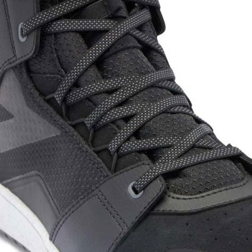 The Dainese Suburb D-WP Riding Trainers are waterproof, comfortable, and lightweight motorcycle shoes designed for versatile use in various weather conditions. The asymmetric design in the sole adapters makes it easier for the levers to operate during riding, making them suitable for both motorcycle outings and walking. The ultra-durable Groundtrax sole incorporates technology to provide optimal stability, grip, and comfort, whether on or off the bike. Made from breathable microfibre upper fabric, the Suburb D-WP boots are ultra-comfortable and feature a waterproof D-WP lining, keeping your feet dry and a mesh comfort liner. The Ortholite footbed with long-term cushioning and a high level of breathability also enhances comfort. CE Level 2 certified (EN:13634), the Suburb D-WP boots boast rigid inserts on the malleolus area with soft D-Foam on the internal side and gear change PU reinforcement.