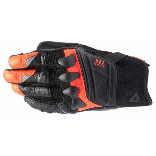 The Dainese X-Ride 2 Ergo-Tek motorcycle gloves offer a leather and fabric construction with integrated Ergo-Tek technology on the knuckles. Strategically placed stretch fabric on the surface of the gloves ensures ventilation and ease of movement. Certified to CE - Cat. II - EN 13594/2015 Standard cat. II lev. 1 These offer leather palm reinforcement with Thermoplastic resin inserts on the side of the little fingers. The ergonomic design with pre-curved fingers ensures superior comfort in the riding position and prevents rider fatigue. The adjustable cuff strap with double band cuff closure and a knitted cuff gives the perfect custom fit and is ultra-comfortable. Reflective inserts provide added visibility, and these are also touchscreen-compatible.