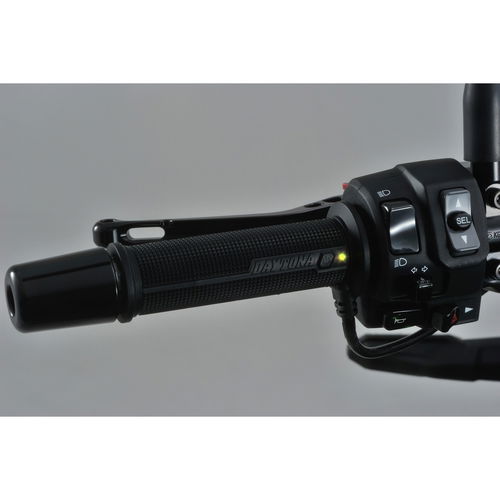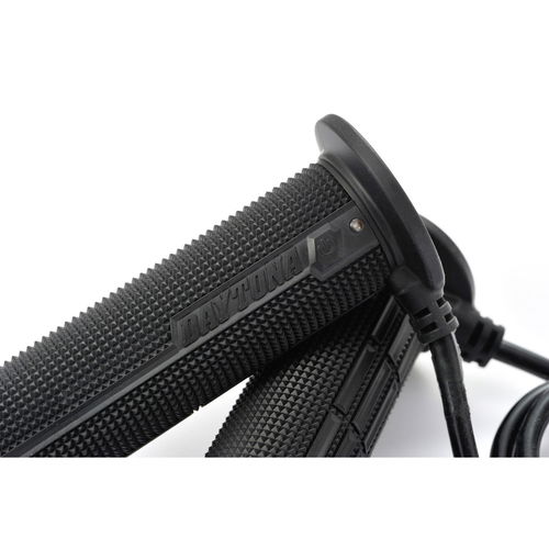 Daytona Heated Grips for your motorcycle with a 4-level heat controller for maximum comfort. It features a built-in electrical switch with five colour LED indicators. These fit 7/8 inch 22.2mm handlebars and are 120mm in length. The quick-heat function provides instant heat, and these are waterproof with double-layer rubber grips for a smooth grip. A 12-volt is needed.