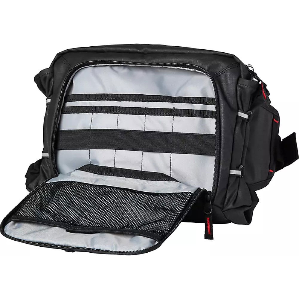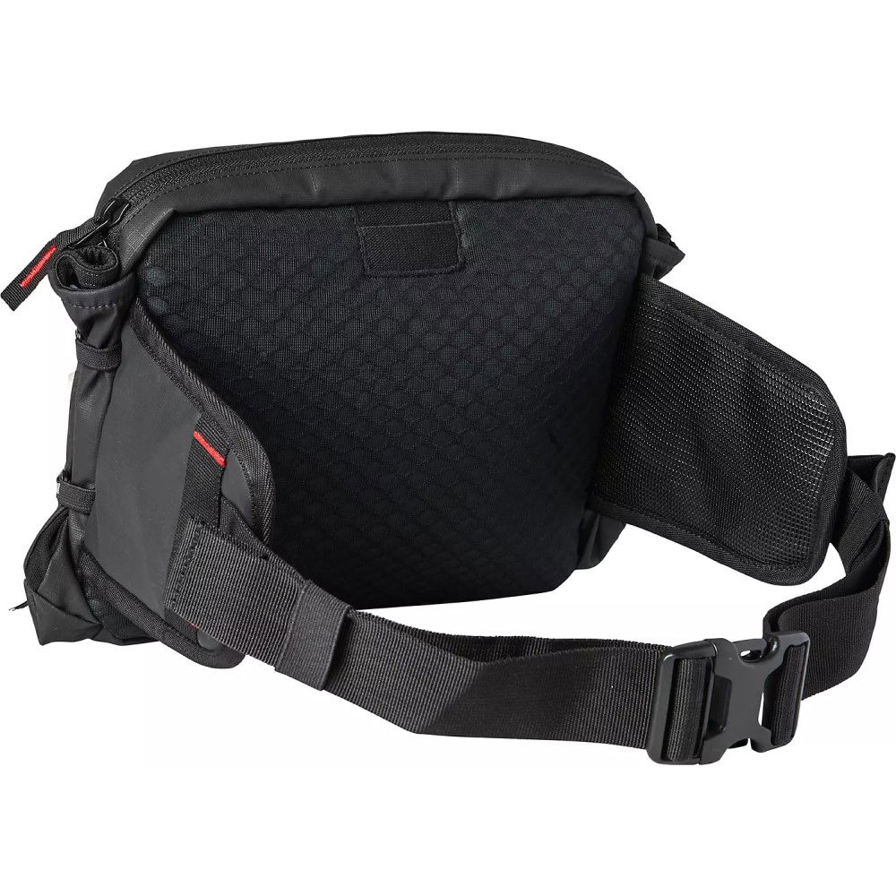 The Fox Racing Lumbar 5-litre hydration pack is a low-profile hydration and storage solution. It is made from ultra-durable 600D polyester and measures 10.6 x 8.7 x 3.9 inches. It boasts a 2-litre HydraPak reservoir and a fleece-lined pocket for your valuables with a 5-litre storage capacity. It is comfortable and non-intrusive and, as it is a bum bag, doesn't put weight or pressure on your shoulders. It has a key clip, a magnetic hose retention and reflective trim.