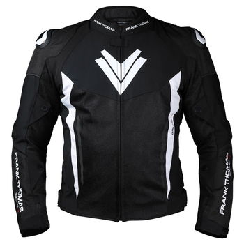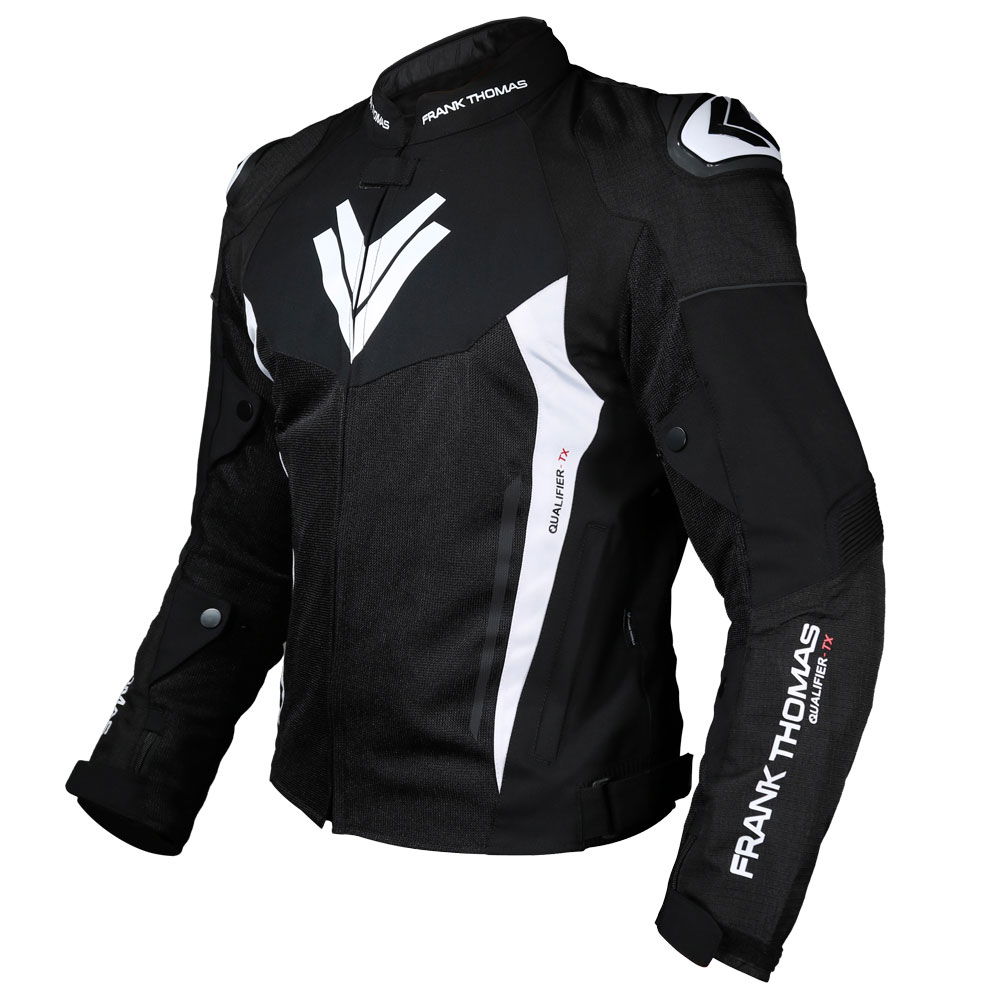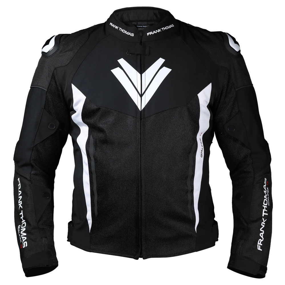 The Frank Thomas Qualifier TX II Mesh jacket is designed for warm-weather riding, made from an ultra-durable 50% Polyamide and 50% Polyester mix with four-way stretch, with CE Class A EN 17092-4:2020 certification. It boasts CE Level 2 armour at the elbow and shoulders with a pocket for a back protector insert (sold separately) and hard TPU outer shoulder protectors. It offers sports styling with touring features, including a removable quilted thermal liner for versatility and a fixed mesh lining to keep you cool and fresh. Resealable air vents and a resealable exhaust at the rear promote outstanding air circulation. Accordion detailing provides excellent freedom of movement and adjustability at the waist and arms, offering a perfect custom fit. The elongated rear prevents wind ingress in the riding position, and a zip attaches to matching Frank Thomas trousers. A comfortable Neoprene collar prevents skin irritation, and this has two zipped outer pockets and three inner pockets (including a phone pocket) for carrying essentials. Welded external zips avoid water ingress, and subtle reflective detailing maximises night visibility without compromising the sleek design of the Qualifier TX. Available in a choice of colours with matching items.