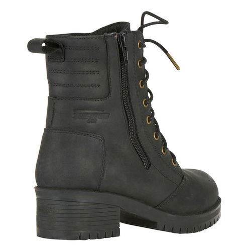 A stylish ladies' motorcycle boot with a 4cm heel, the Furygan Janis D30 boots are made from high-quality leather and feature D30 malleolus-reinforced heels and toe protectors for superior protection. D3O is a very soft material where molecules lock in the event of an impact to absorb kinetic energy. This technology makes it possible to create smooth and ergonomic protectors for more security and comfort. The side zip allows for easy entry and exit, keeping the laces in place for a perfect fit. A tab behind the heel provides added ease of entry and exit. Gear change reinforcement provides additional durability, and the rubber sole is ultra-durable, keeping you sure-footed. A waterproof and breathable membrane keeps your feet comfortable and dry, and the removable insole offers superior comfort.