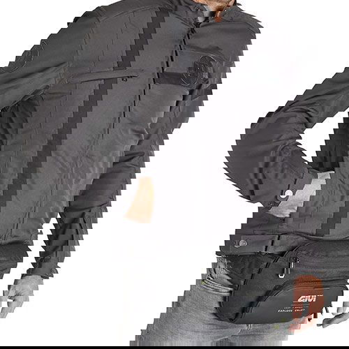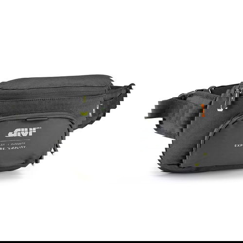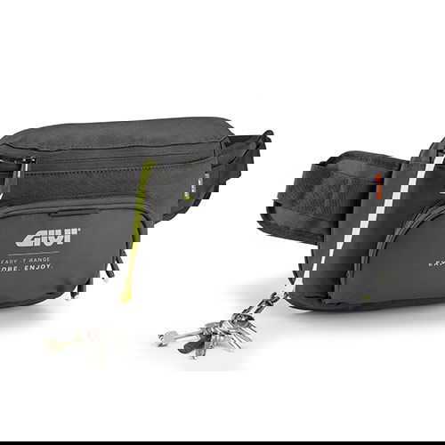 The Givi EA145B Bumbag is part of Givi's "Easy" range. It is a handy bum bag made from 600D Polyester PU and laminated polyester PU with PU inserts and black reflective piping. It is fully adjustable and fastens at the waist with clips—this can be extended or shortened easily. It has an inner pocket, front pocket, and rear pocket. It measures 110 x 140 x 250 with a 1 kg maximum load.