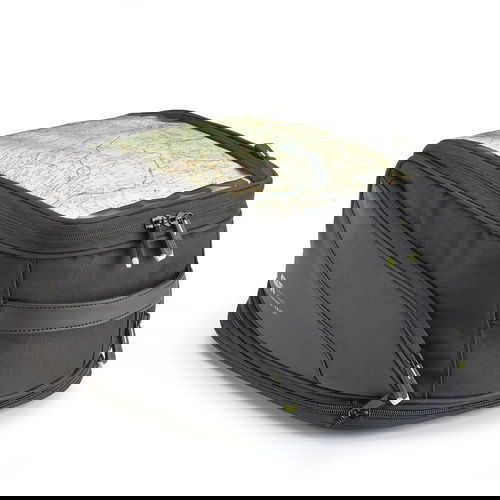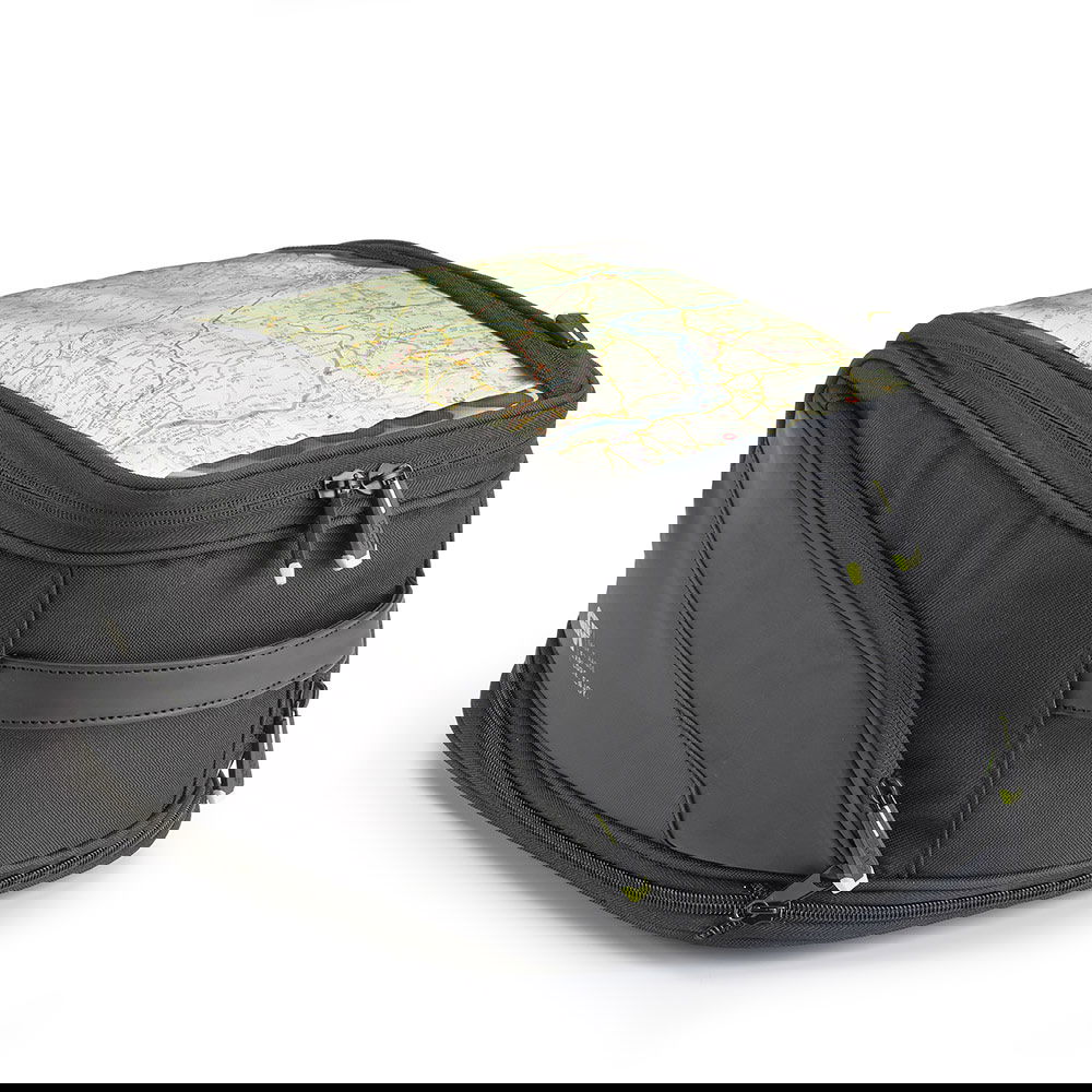 The Givi Expandable Tanklock 26-litre tank bag is made from 600-denier PU water-resistant Polyester with PU inserts. It can be fitted in conjunction with the Givi bike-specific tank lock fitting. It has a transparent map holder with quick access and two side pockets with zips for security. It also has a safety strap to be fixed to the handlebar that can be used as a shoulder strap for shoulder-carrying when off the bike. It also features removable inner reinforcement and reflective detailing for maximised visibility. It also comes with a water-resistant rain cover in fluorescent material, and it is expandable from 20 to 26 litres to carry all your essentials.