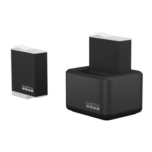 The GoPro Dual Charger lets you charge two GoPro batteries simultaneously, plus two Enduro batteries that you can use as replacements or spares for HERO12 Black or HERO11 Black. They can also be used with HERO10 Black to improve cold weather performance while extending recording times in moderate temperatures. Included in the box are 2 Enduro rechargeable batteries, a dual battery charger, and a USB-C cable. The battery is an advanced 1720mAh lithium-ion battery that can be used as a replacement or spare for the one that came inbox with HERO12 Black or HERO11 Black and increases recording time with HERO10 Black by as much as 40%. It also dramatically improves cold-weather performance over standard GoPro batteries in temperatures down to 14°F (-10°C) and has up to 13% faster charging rate than standard GoPro batteries. It optimises charging so you’ll get a fully charged battery as quickly as possible and charges via USB port; for charging up to 38% faster2, use the optional GoPro Supercharger (sold separately). It features dual LED lights that display the charging status of both batteries and works with Enduro and standard GoPro batteries.