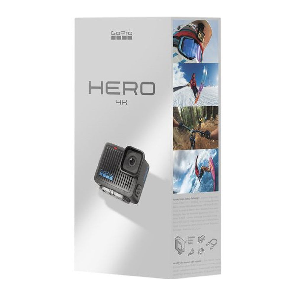 The GoPro Hero 4K Ultra HD Action Camera automatically stabilises your footage in the Quik app. You can start recording without lifting a finger – there's voice control with eight commands in eleven languages, and you can see your videos without waiting to download them. Highlight videos are automatically sent to your phone while your GoPro is charging. It'll save your video safely in the cloud, too. You can edit them easily, too, on the Quik app. The built-in mounting fingers are compatible with over 35 GoPro mounts and accessories. It offers three easy modes – 4K video, 2.7K60 fps slo-mo and 12-megapixel photos and is waterproof up to five metres. The replaceable hydrophobic lens helps to keep your shots clear, and the enduro battery technology keeps them going, even in cold weather. It has built-in WiFi and Bluetooth, offers 4K Ultra HD video, a 1.76 LCD screen, and 12-megapixel still photos. It is ultra-compact, too.
