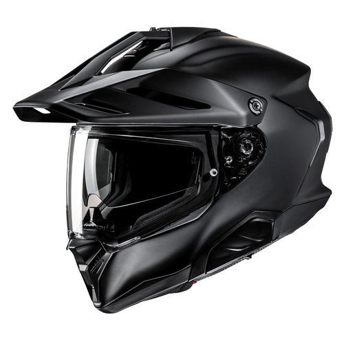 The HJC RPHA 60 in matt black is a premium dual-sport helmet for off-road trails and cross-country rides. Made from Premium Integrated Matrix / P.I.M.: High-performance material infused with epoxy resin and fibre tissue enhances impact protection with low weight and superior durability. It offers HJC's Advanced Channelling Ventilation System (ACS): full front-to-back airflow, three intakes, and four exhausts that flush heat and humidity up and out. The aerodynamic shape of the shell provides enhanced aerodynamics and stability at high speeds. The RPHA 60 is wind tunnel tested for optimum performance. It gives maximum stability with minimal drag at high speeds. It has a Pinlock-ready HJ-47 visor that offers 99% UV protection and is anti-scratch coated. It also comes with a Pinlock 120 clear insert, a light smoke visor, a chin curtain, and a breath deflector. The dynamic multi-step sun shield prevents sun glare and has glasses grooves for optimum convenience. The moisture-wicking and quick-drying interior is made from advanced anti-bacterial fabric, and the crown and cheek pads are removable and washable. It is ready for the SMART HJC 11B, 21B & 50B Bluetooth (sold separately), has a manufacturer's 5-year warranty and is ECE R22.06 certified.
