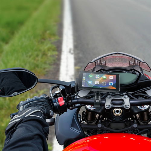 The Interphone Ridesync gives you a simplified interface designed for a wide range of applications optimised for motorcycle use: music, maps, podcasts, and more. Installation is easy and versatile thanks to the Quiklox system, providing instant access to apps and a large and readable screen with minimal clutter. It offers a 5.5 display measuring H150xW77xD17 with a weight of 182g. It connects with a wireless Wi-Fi connection, thus allowing for device connectivity without the use of cables. As it mirrors the smartphone, all its functions remain up-to-date and can be used without draining the phone's battery, keeping it safe in your pocket. Thanks to the Quiklox system, the Ridesync can be easily attached and detached from the motorcycle bracket, offering flexibility and customisation. Compared to competitors, it is the slimmest on the market, allowing for its use on other motorcycles or in cars as well. The Ridesync offers a certified IP66 protection rating, indicating that the device is completely dustproof and protected against strong water jets. The screen remains visible even in direct sunlight and does not get blocked due to overheating, making it usable in any weather condition. In the box, you get the Ridesync device, the handlebar mount and a user guide.