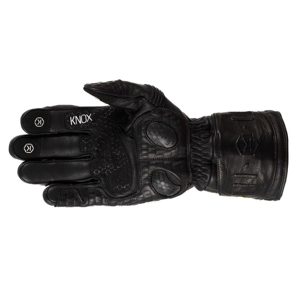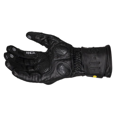 Suitable for three seasons, the Knox Conistion waterproof motorcycle glove is made from 100% cowhide leather and is CE-approved. It features a brand-new Knox Micro-Lock moulded knuckle and an exclusive Boa fit system for a precise, micro-adjustable fit around the wrist. The patented Knox Scaphoid Protection System on the palm provides unrivalled protection in case of an impact. The Coniston offers a superior eVent air permeable 100% waterproof membrane with no bulky insulation, designed as a 3-season glove suitable for spring, autumn, and rainy summer days. A soft Micro-Lock knuckle enhances impact absorption, and TPR finger sliders provide added abrasion resistance. Amara Silicone grip at the palms gives enhanced feedback and grip. The Coniston gloves are touchscreen-compatible and come with a visor wipe on the left thumb as a handy feature.