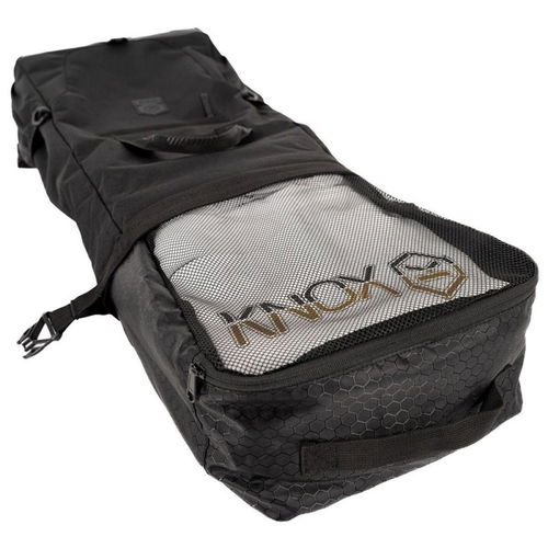 The Knox Studio Rucksack MK3 is made from ultra-durable 600D polyester canvas fabric. It offers a waterproof design with fully taped seams, PU-coated nylon lining and a roll-top buckle closure with added branded buckle cover for added security. The vulcanised rubber moulded base with added Micro-Lock offers superior impact protection, and this also comes with an internal padded laptop pocket and boasts 28 litres of storage capacity. A removable mesh packing cube with YKK zips is included for organised storage. The external water-resistant YKK Aquaguard zip pocket gives extra storage and contains a helmet carrier with a 3-point secure attachment system and reflective prints for night visibility. Dual external mesh water bottle pockets provide easy access, and reflective trim added to the straps gives night visibility in oncoming traffic. A hexagon quilted padded spacer mesh back allows for breathable comfort, and adjustability at the arm straps slows for the perfect balanced fit, and the adjustable waist and chest buckles give the ideal fit. Knox branded webbing carry handles give easy transportation off the bike, and a branded Knox silicone badge to the centre looks great.
