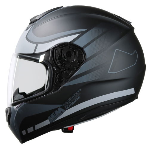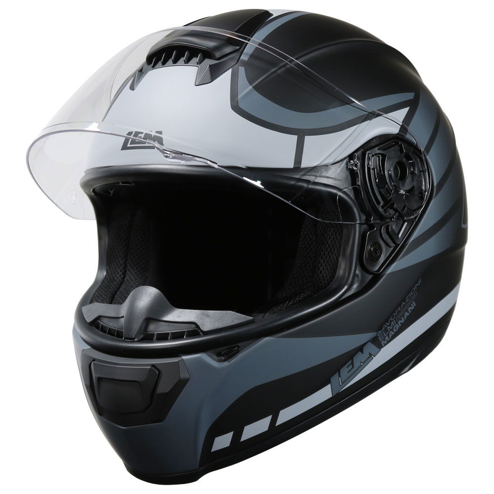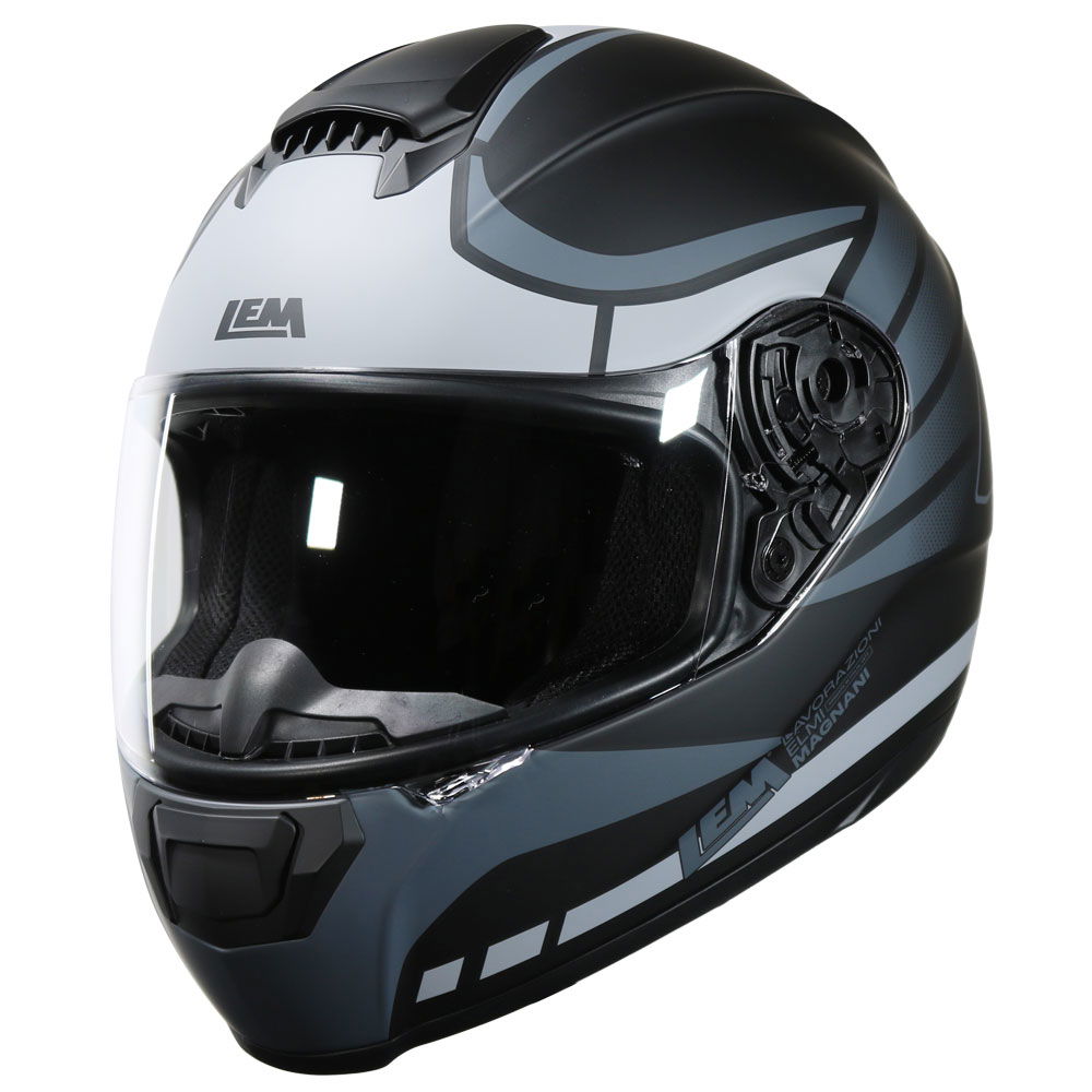 The Lem Optix is a full-face motorcycle helmet with an aggressive design for optimum aerodynamics. Made from lightweight polycarbonate, it weighs 1550 grams in size M (+/- 50 grams for size). Inside is a soft and breathable antibacterial fabric that is removable and washable with an anti-mosquito chin curtain. The Optix offers outstanding vision thanks to the transparent polycarbonate visor with anti-scratch treatment. The adjustable ventilation system comprising a chin, top and rear vents gives superior air circulation. It comes with a helmet bag and a micrometric buckle for an adjustable and secure closure. ECE 22.06 certified.