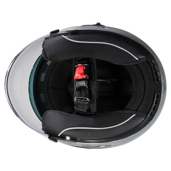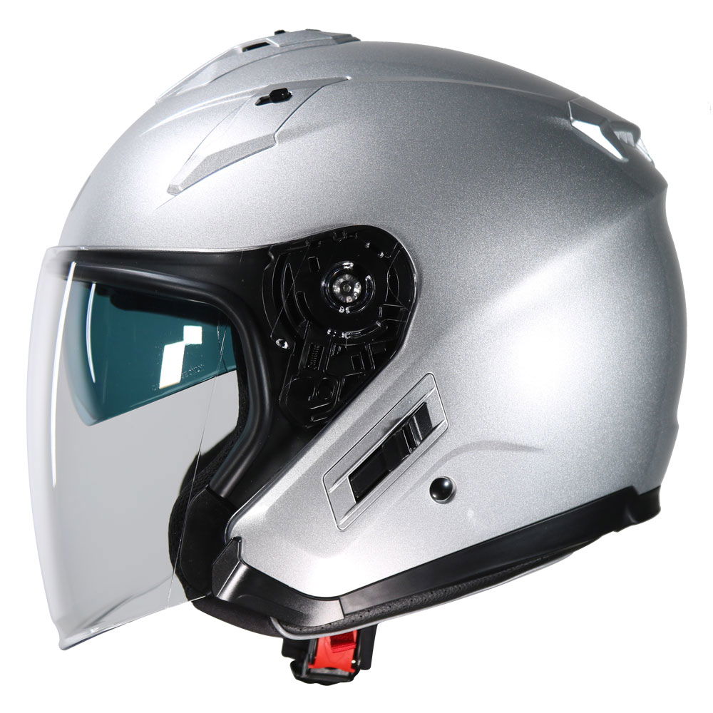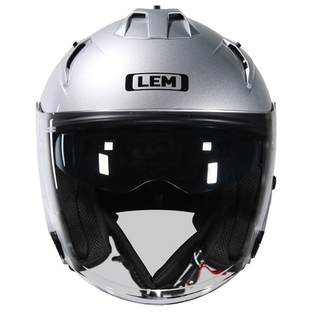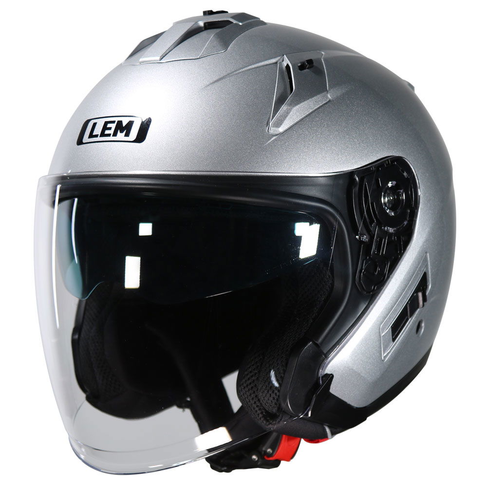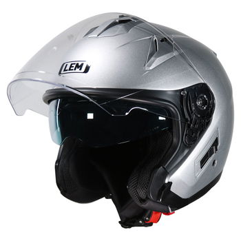 The Lem Quick helmet in silver is an open-face helmet with an elongated clear visor for outstanding vision and protection. Made from lightweight polycarbonate, it weighs 1350 grams in size M (+/- 50 grams for size). Inside is a soft and breathable antibacterial fabric that is removable and washable. The Quick offers outstanding vision thanks to the transparent polycarbonate visor with anti-scratch treatment and an inner dark-tinted sun visor (Dual Visor System) that is easy to use while wearing gloves. The elongated visor protects from the elements while not compromising vision. The adjustable ventilation system, comprising three upper vents and rear vents, gives superior air circulation. It comes with a helmet bag and a micrometric buckle for an adjustable and secure closure. ECE 22.06 certified. Available in a wide choice of colours.