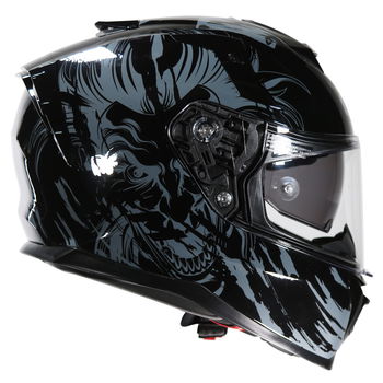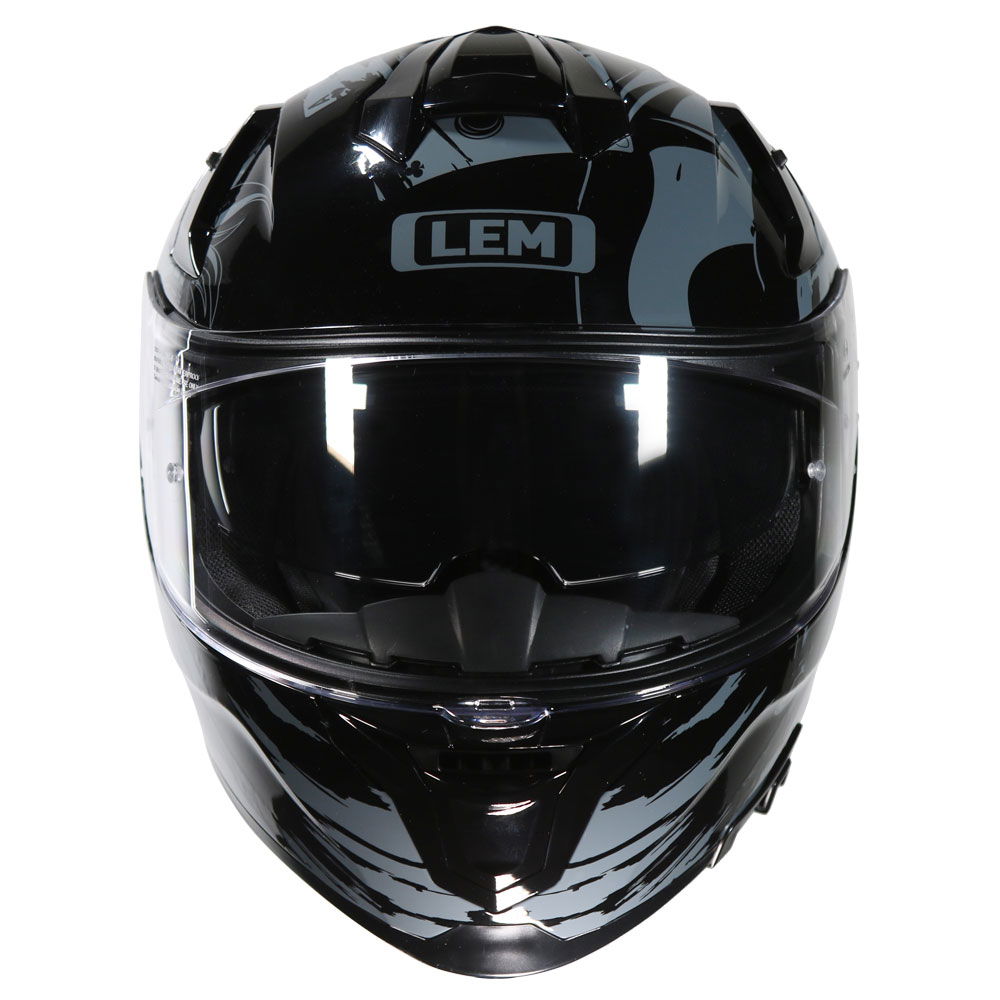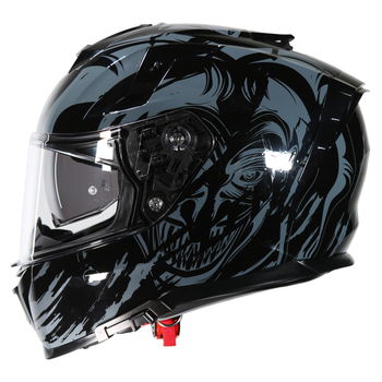 The Lem VZN Joker Black is a full-face motorcycle helmet with an aggressive design for optimum aerodynamics. Made from lightweight, advanced PC polycarbonate, it weighs 1560 grams in size M (+/- 50 grams for size). Inside is a soft and breathable antibacterial fabric that is removable and washable. The VZN offers outstanding vision thanks to the transparent polycarbonate visor with anti-scratch treatment and an inner dark-tinted sun visor (Dual Visor System) that is easy to use while wearing gloves. Pinlock ready. The adjustable ventilation system comprising a chin, three upper vents and rear vents gives superior air circulation. It comes with a helmet bag, a breath deflector insert and a micrometric buckle for an adjustable and secure closure. ECE 22.06 certified. Available in a choice of colours.