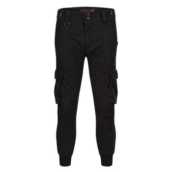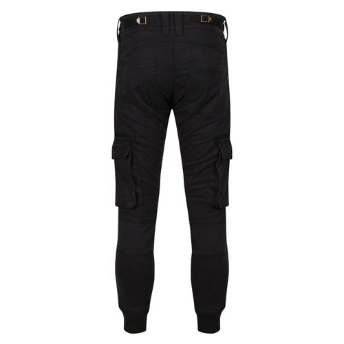 Long enough to go over ankle boots or shoes but thin enough to go into motorcycle boots, the MotoBull Ryan Cargo Pants in black feature UKCA & CE Certified A rating with removable CE Level 2 knee armour included in a reusable drawstring bag. They also offer pockets for hip armour (sold seperately). The Ryan pants look great on and off the bike and offer exceptional comfort thanks to a breathable, moisture-wicking mesh inner lining with stretch ribbing at the ankles for excellent freedom of movement. The knee armour pockets are adjustable with Velcro for additional versatility. Belt loops allow for use with a belt and offer a zip and snap button closure. Two front raised leg pockets with one zip closure, one magnetic closure, deep front and back pockets, and a hidden coin pocket give convenient storage.