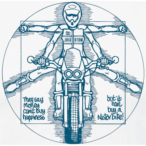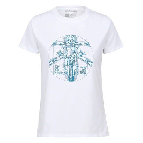 The MotoGirl Da Vinci t-shirt shows the "proportional study of women bikers" - hence the Da Vinci name (lols) and is made from 100% cotton with a fashionable short-sleeved design with a crew neck. Machine washable.