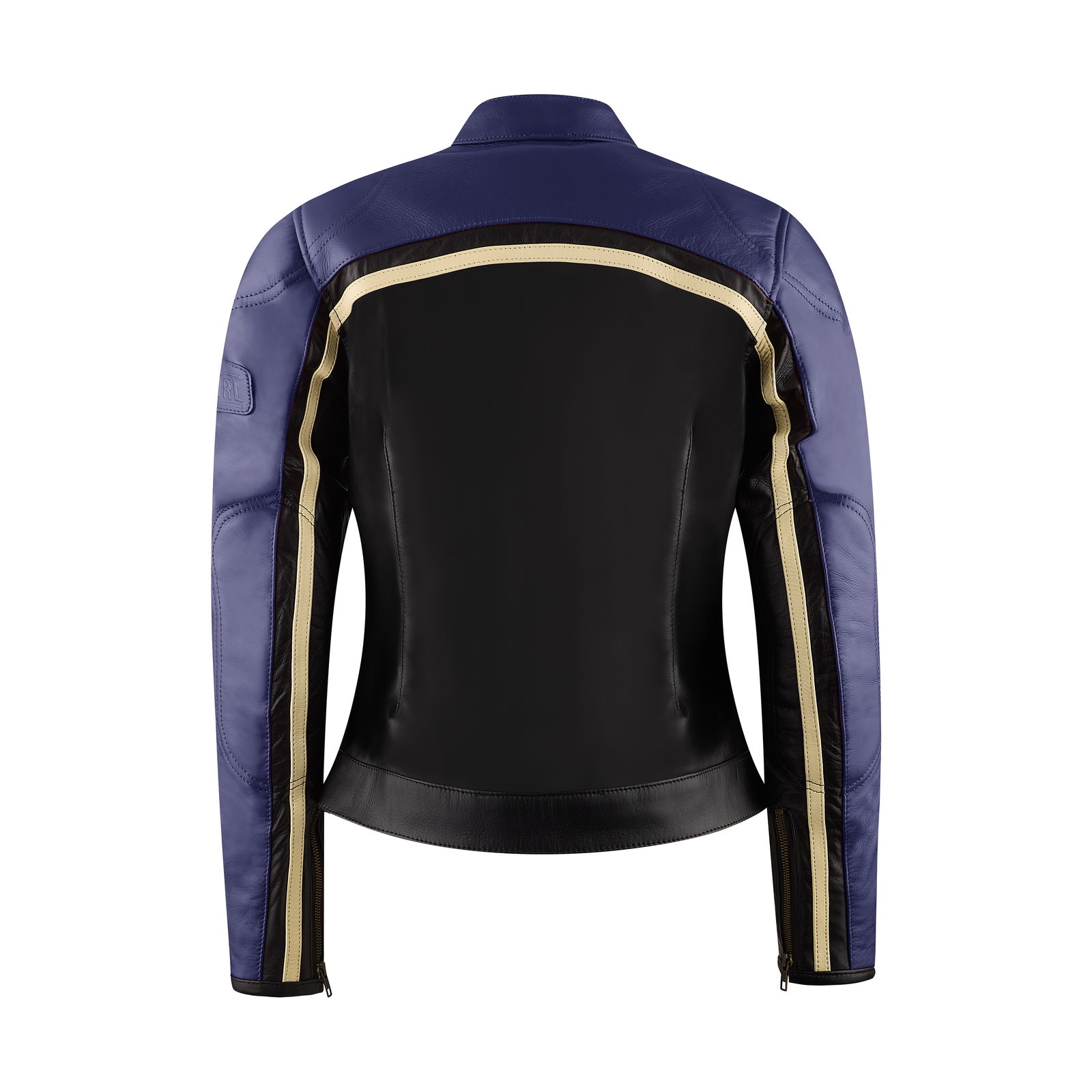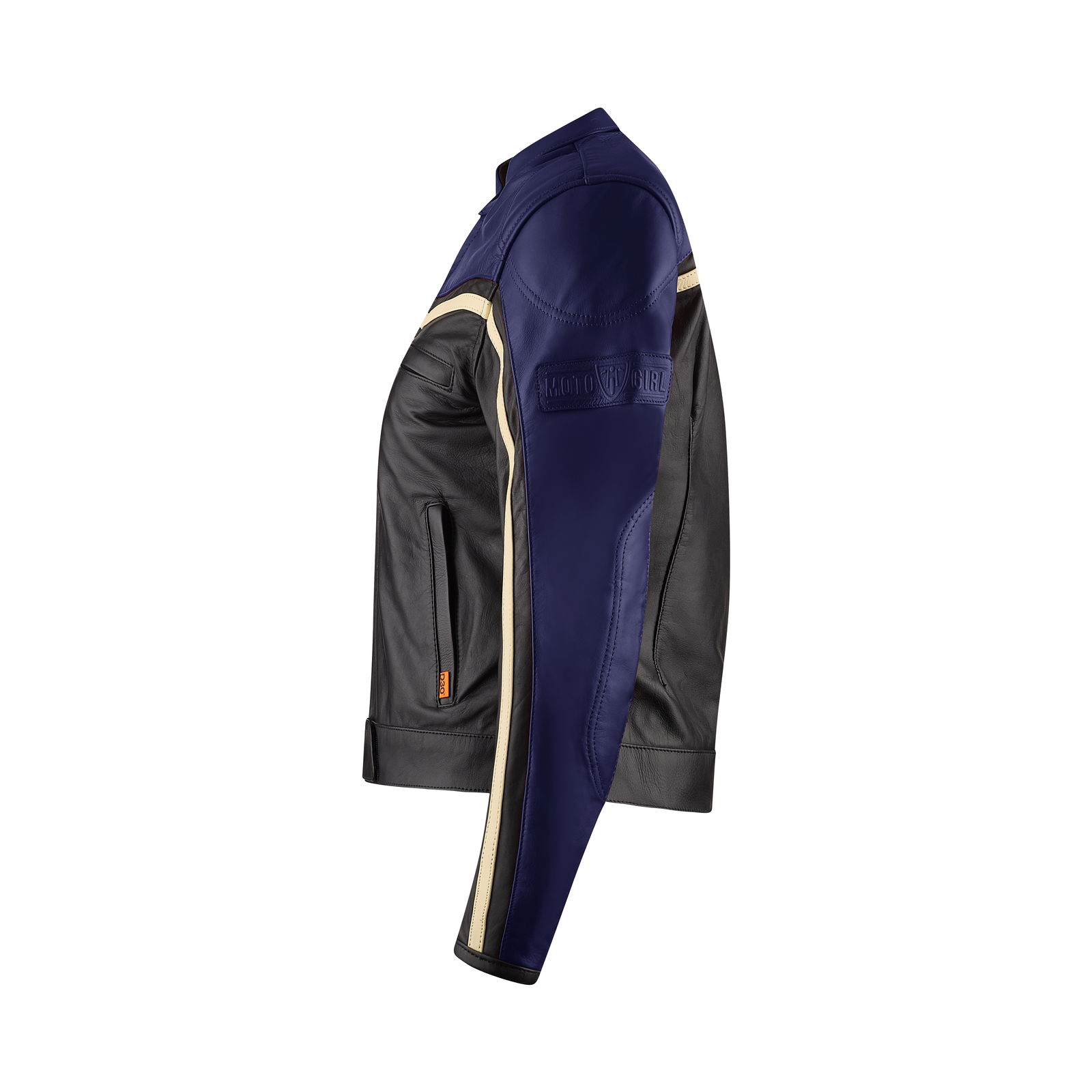 The Motogirl Hayley jacket offers a retro, stylish design that draws on vintage aesthetics while incorporating modern safety standards. It is a CE-certified and approved garment, rated AAA, featuring thin and ultra-lightweight CE Level 1 D30 Ghost shoulder and elbow protectors. Made from 100% cow aniline leather that is ultra-soft to the touch, it features a 100% polyester lining for added comfort and a pocket for a back protector (sold separately). A long and short connection zip attaches to Motogirl trousers, featuring an outer zipped pocket and two inner pockets for convenient storage. Adjustability at the waist gives the perfect fit. Motogirl tailors their clothing to the female form for an outstanding fit. The Hayley is also available in a wide choice of other colours.