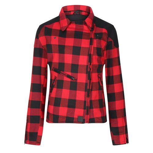 The MotoGirl Jessie flannel jacket offers a retro biker jacket design with a checked flannel pattern for a modern twist. CE AA Certified, it comes with D30 Ghost CE Level 1 armour at the shoulders and elbows and a pocket for a back protector (available separately). The shoulders and elbows are reinforced for additional protection, and the Jessie jacket is fully lined with Aramid fibre for reinforcement. It has two large internal storage pockets and front side entry pockets with YKK zip cuff closure and a connection zip to attach to matching trousers. Also available in a grey and black colourway.