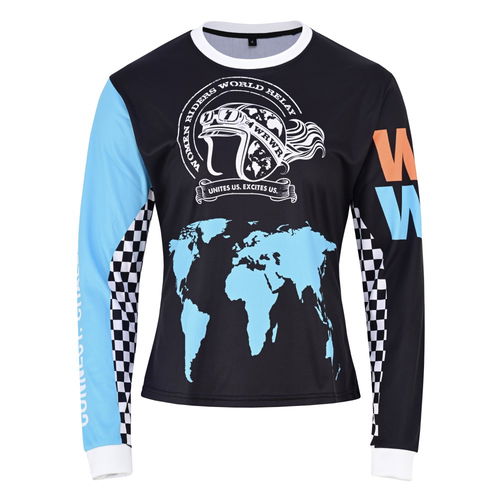 MotoGirl have collaborated with Women Riders World Relay to celebrate the launch of the 2026 WRWR, and this top is the result! Made from 100% polyester, it is machine washable. Like all MotoGirl clothing, it is designed to fit women well, as it is an MX top, and it is sized to go over your off-road gear, so if you are planning to wear it as a casual top, please size down. It boasts the WRWR logo with an eye-catching, colourful design - get yours here!