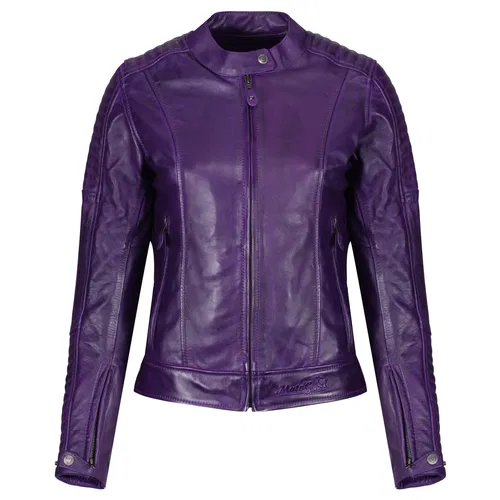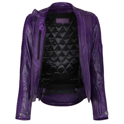 The MotoGirl Valerie leather jacket is a fashionable women's motorcycle jacket that is CE AA and UKCA certified. It is made from premium hand-waxed cowhide semi-aniline leather that is longer at the back to prevent weather ingress and increase comfort. It is adjustable for the perfect fit for all shapes with a removable inner lining for comfort in all climates. It comes with CE Level 2 armour at the shoulders, elbows and back. Minimal branding gives a subtle stylish finish, and the biker styling not only looks fantastic - and can be used off the bike - but is ultra-practical and protective too. Available in a wide choice of colours - this is the unique purple colourway.