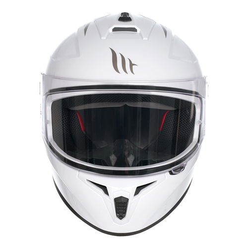 The MT Draken full-face motorcycle helmet offers an injected thermoplastic shell in an aggressive aerodynamic design. It features a hi-impact absorption inner shell with multiple-density EPS liner and homologated front protection P. In addition, it features a micrometric closure system, removable and washable liner and a complete ventilation system that can be personalised. The optically correct anti-scratch polycarbonate visor works on a pivoting visor mechanism, which is quick-release for quick removal and installation. It is also Pinlock ready (insert sold separately). It comes with ACU Gold Standard. Available in a choice of colours, this is the pearl white colourway.